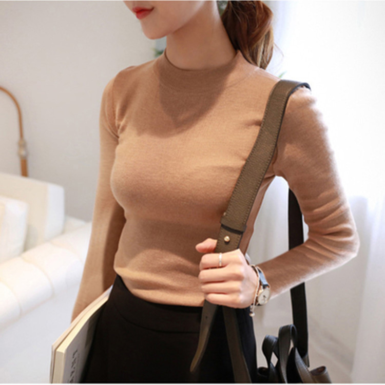 半高領(lǐng)毛衣女套頭修身打底衫圓領(lǐng)緊身螺紋內(nèi)搭針織衫秋冬韓版薄款 /