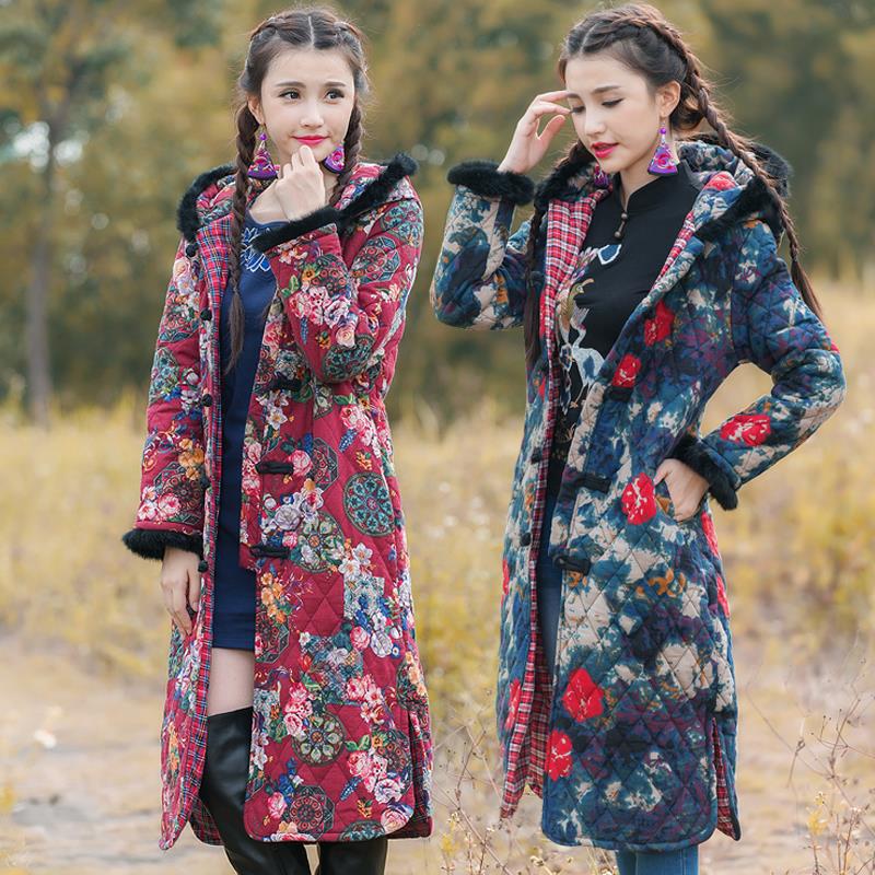 2015秋冬新款民族風(fēng)真兔毛加長加厚連帽長棉衣棉襖風(fēng)衣 /
