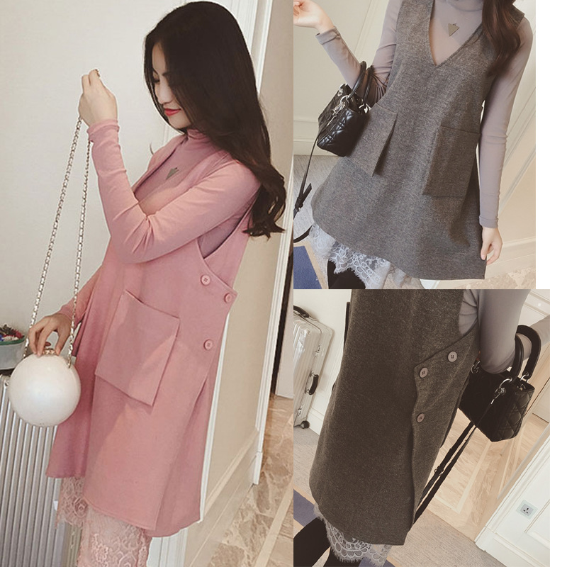 孕婦裝新款兩件套無袖毛呢背心裙+孕婦蕾絲打底裙 /