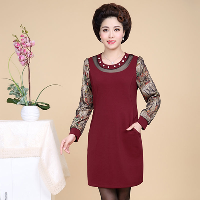 2015秋季新款中老年秋裝中年女裝打底裙媽媽裝長(zhǎng)袖連衣裙批發(fā) /