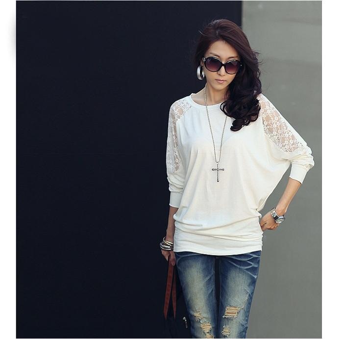 蝙蝠袖蕾絲拼接長袖針織T恤速賣通女裝 年底限時底價回饋 /
