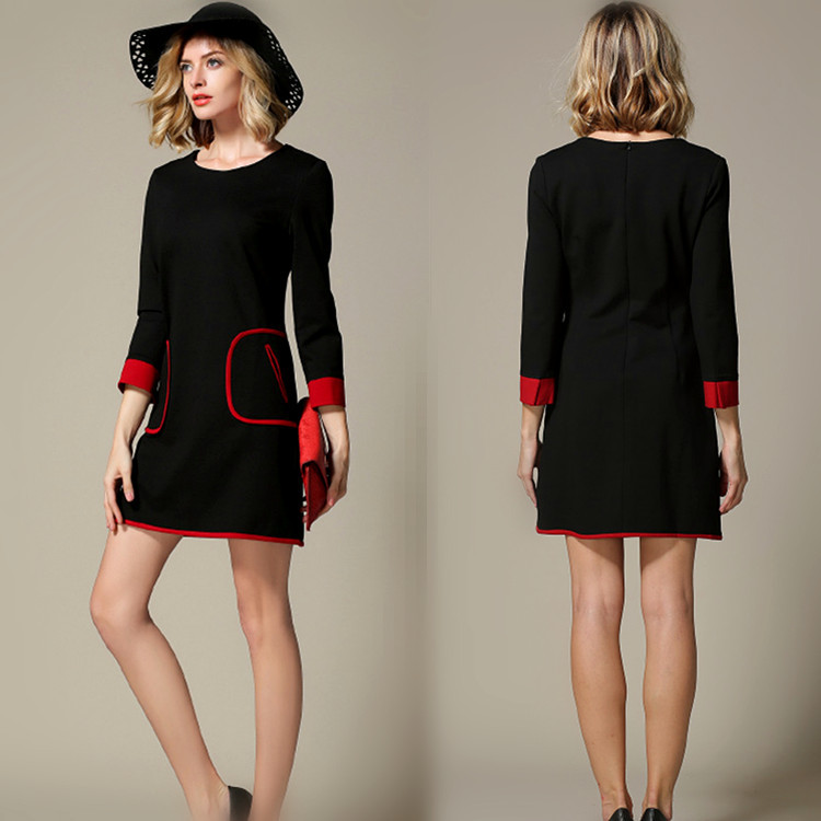 外貿(mào)原單2015歐洲站秋冬新款歐美女裝OL修身顯瘦長袖打底連衣裙 /