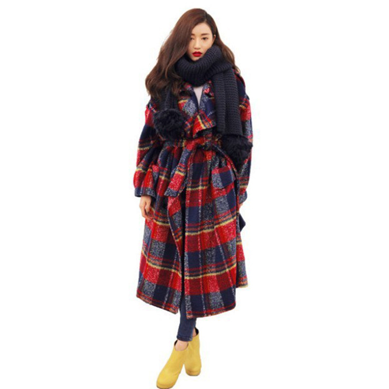 2015秋冬時(shí)尚爆款英倫復(fù)古紅藍(lán)格紋毛呢寬松蝙蝠型女裝大衣外套 /