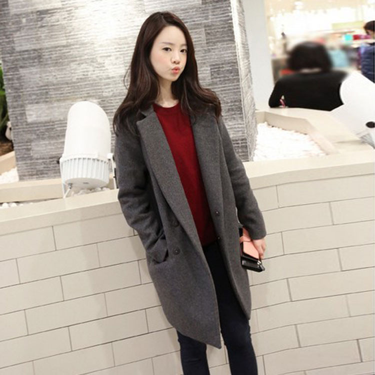 2015秋冬新款女中長款簡約西裝加棉長大衣羊絨昵子厚外套女 /
