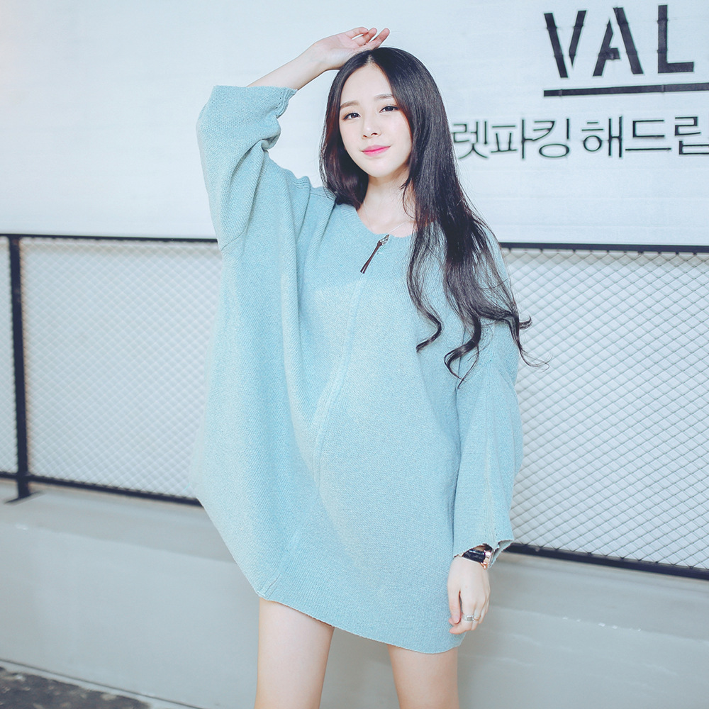 自留款東大門毛衣針織衫圓領(lǐng)蝙蝠袖中長款寬松毛衣新款拉鏈毛衣女 /