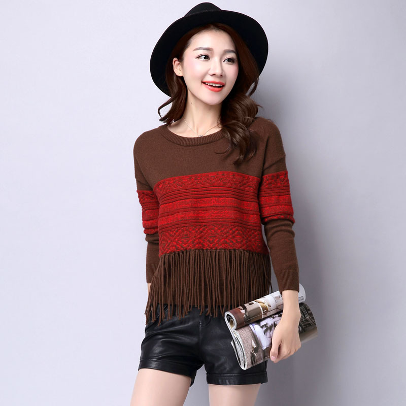 秋冬新品女式針織衫學(xué)院風(fēng)短款套頭毛衣時尚流蘇打底衫廠家直銷 /