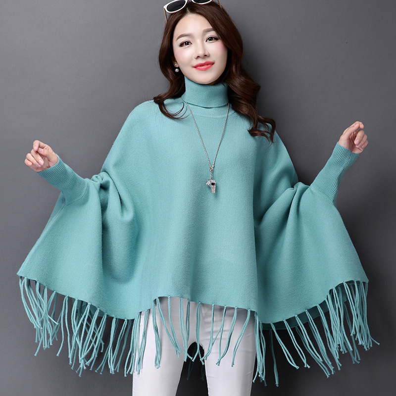 秋冬新款套頭羊絨大衣針織衫蝙蝠袖流蘇斗篷披肩毛衣外套女加厚潮 /