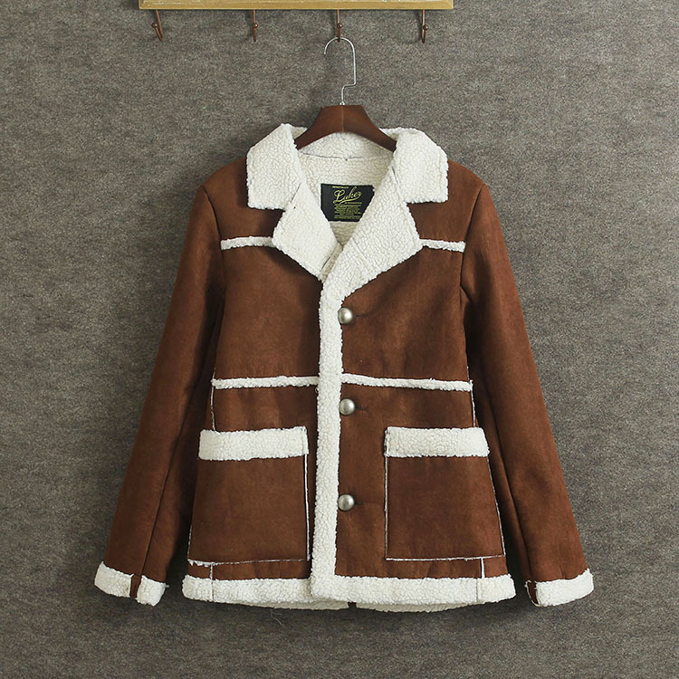冬季男拼接羊羔毛棉衣舒適加厚青年寬松保暖棉服單排扣 /