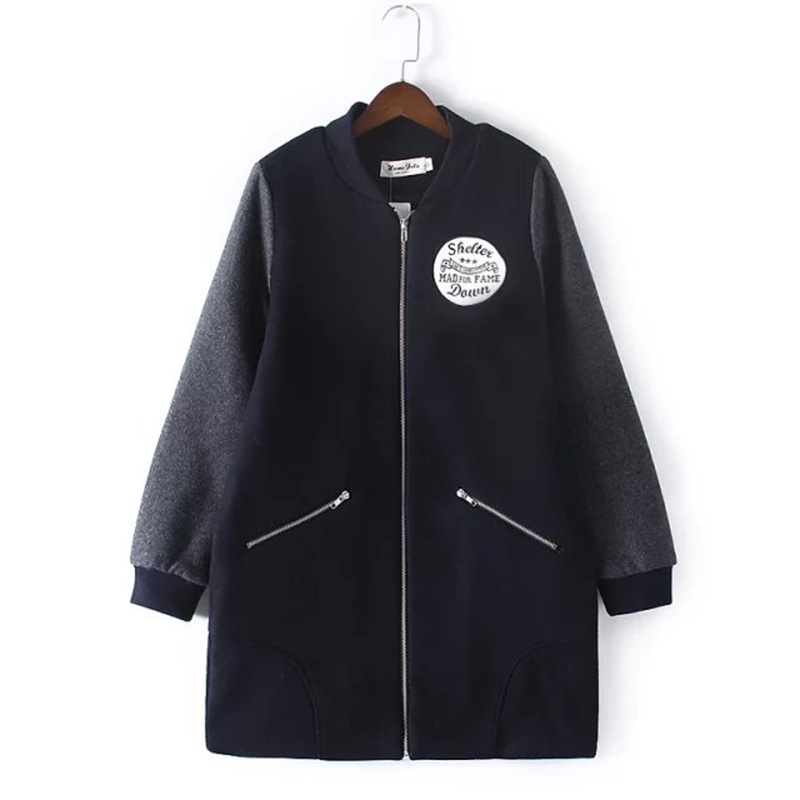 中長款外套棒球服女 韓版寬松拼色時尚加厚棒球服批發(fā) 女式外套潮 /