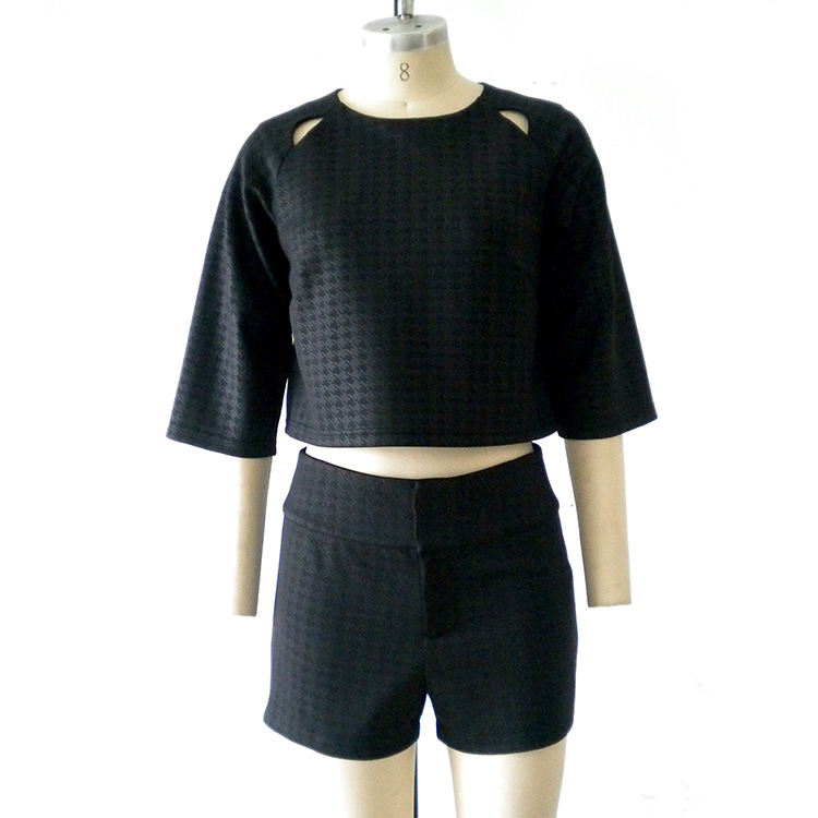 歐洲站2015秋季新款歐美女裝七分袖圓領(lǐng)領(lǐng)印花鏤空打底T恤 /