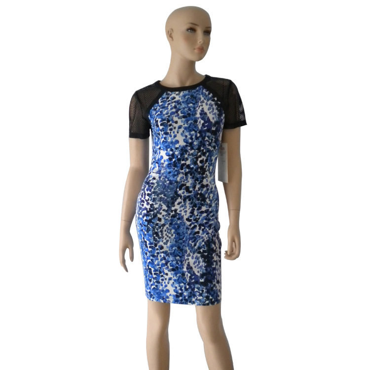 歐美大牌短袖立領(lǐng)拼接性感氣質(zhì)連衣裙修身顯瘦包臀裙 /
