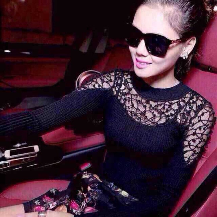 針織拼接小衫 韓版修身長袖蕾絲打底衫 毛衣百搭簡約大方 低價中 /