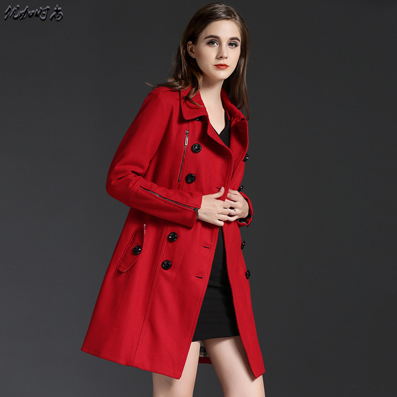 歐洲站2015秋冬裝新款高端女裝 純色修身雙排扣長款風(fēng)衣外套女 /