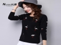 圓領(lǐng)長(zhǎng)袖休閑時(shí)尚寬松大碼天鵝提花韓版精品女式針織套頭毛衣 /