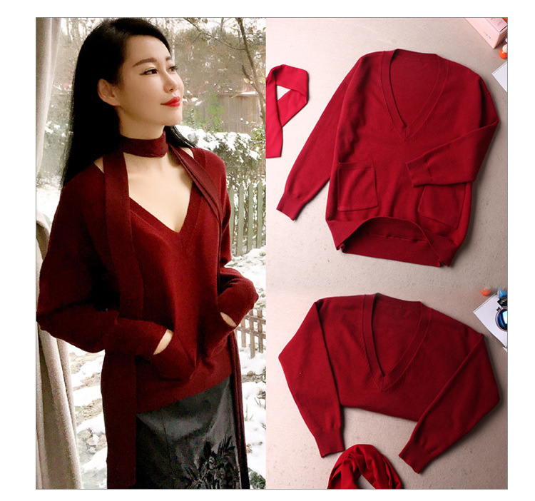現(xiàn)貨 2015秋冬 左岸瀟紅色V領針織打底衫 女裝 女式毛衣 廠家批發(fā) /