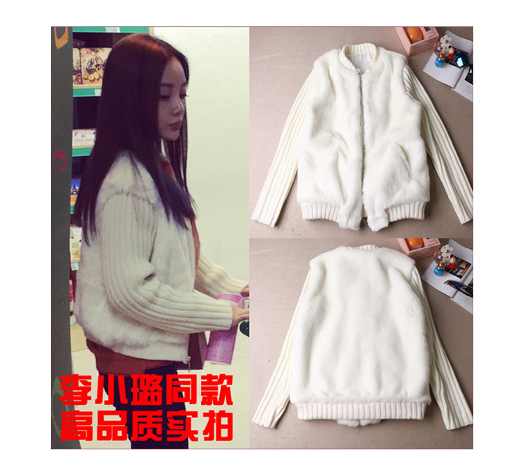 2015 秋冬新品李小璐明星同款時尚休閑保暖兔毛針織拼接外套 /