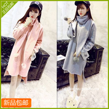 2015新款冬裝兔毛球圍巾修身加絨打底連衣裙套裝女裝秋冬裙潮 /