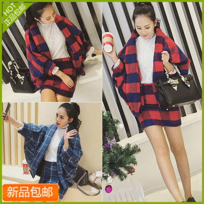 秋冬季韓版名媛撞色格子毛呢外套+半身裙兩件套時尚套裝女裝G7 /