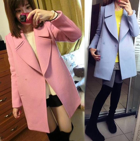 2015新款呢大衣女中長款修身女裝毛呢外套女韓版秋冬呢子風(fēng)衣 /