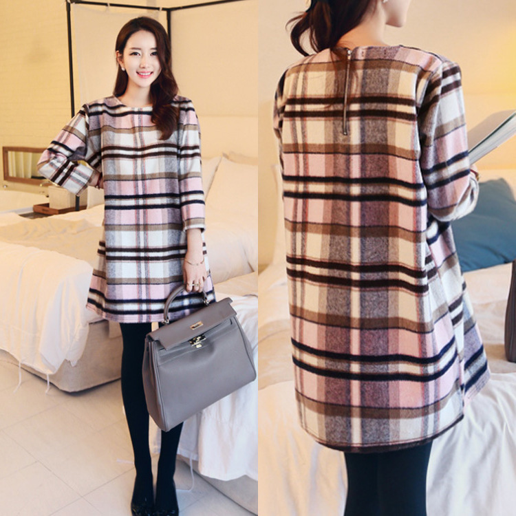F6470 春裝新款 熱銷(xiāo)a字裙寬松羊毛呢連衣裙 英倫格紋修身打底裙 /