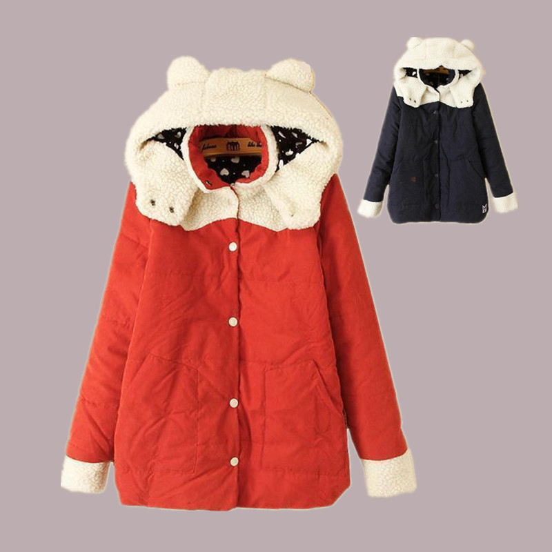 特大碼貓耳朵連帽棉衣女2015冬裝新款學(xué)院風(fēng)胖mm學(xué)生外套一件代 /