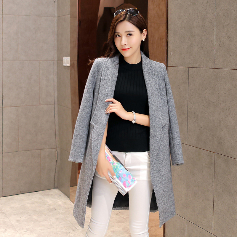 廠家直銷毛呢外套女秋冬新款中長款毛呢大衣西裝領修身大碼外套女 /