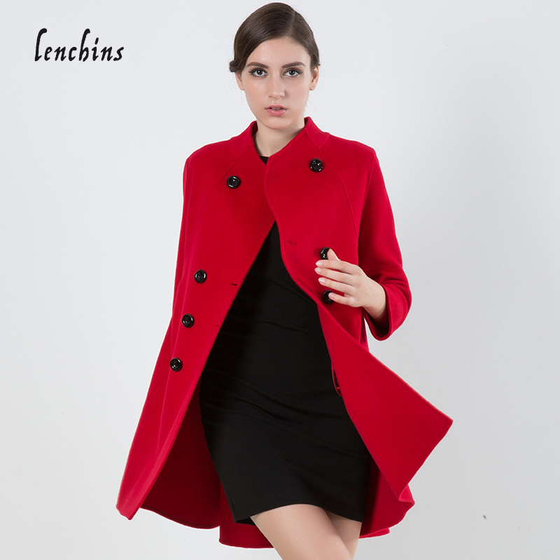 2015新款歐美雙面羊絨毛呢女外套羊毛大衣無領(lǐng)A字裙擺女時(shí)尚大牌 /
