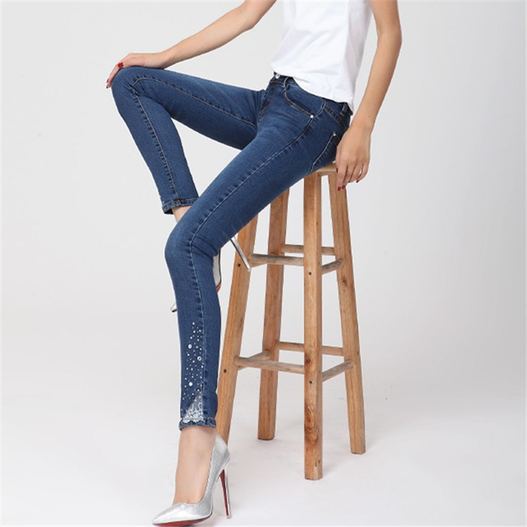 2015秋季新款韓版鑲鉆蕾絲顯瘦彈力小腳鉛筆牛仔長褲 女 /