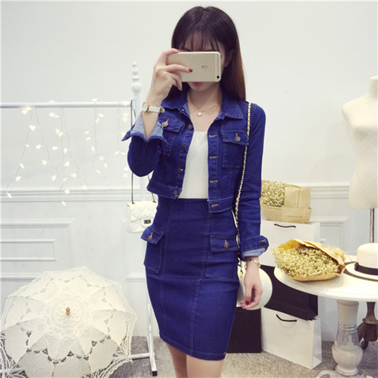 促銷 2015秋季新款韓版女裝時尚彈力修身性感露腰牛仔短裙套裝女 /