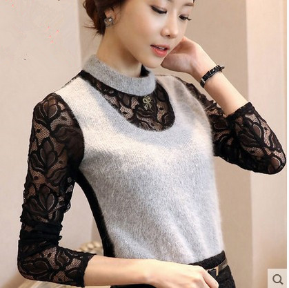 蕾絲衫女2015秋冬新款韓版大碼女裝上衣加厚秋冬打底衫女長袖 /