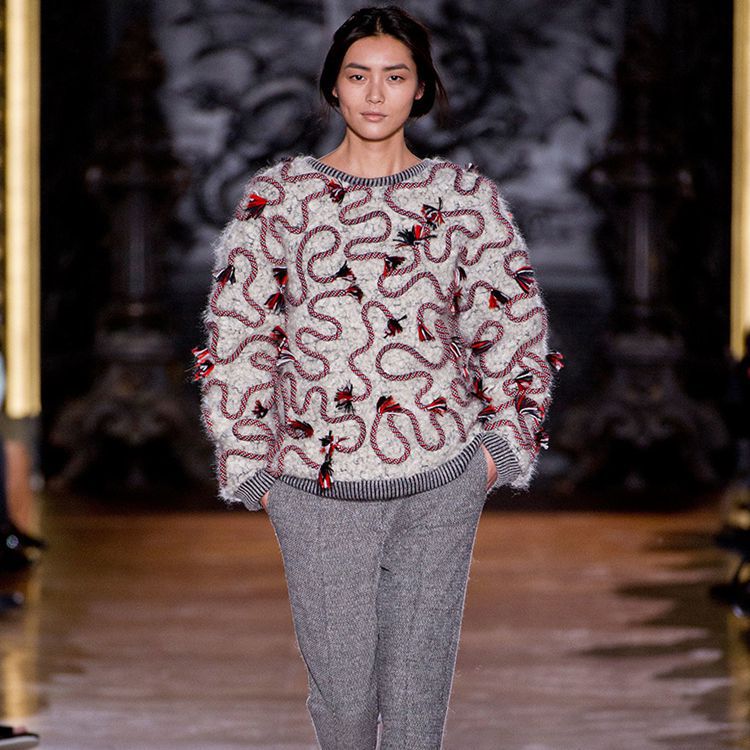 鄧紫琪楊冪明星同款2015秋冬新款重工盤花蛇紋羊毛寬松毛衣女批發(fā) /