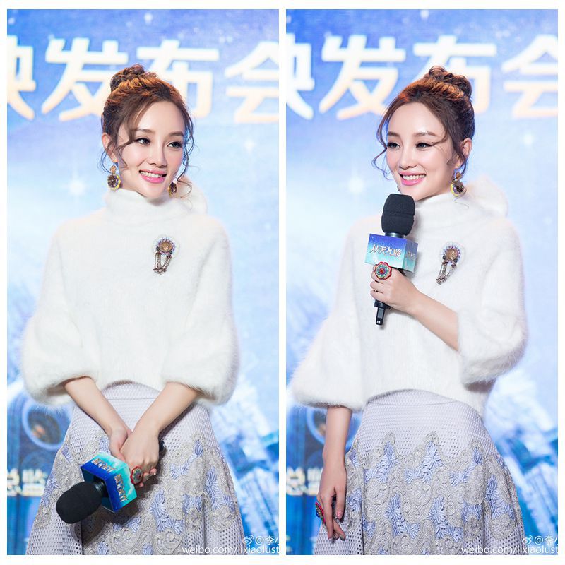 李小璐明星同款秋冬新款白色黑邊毛衣黑色五角毛呢半裙套裝 /