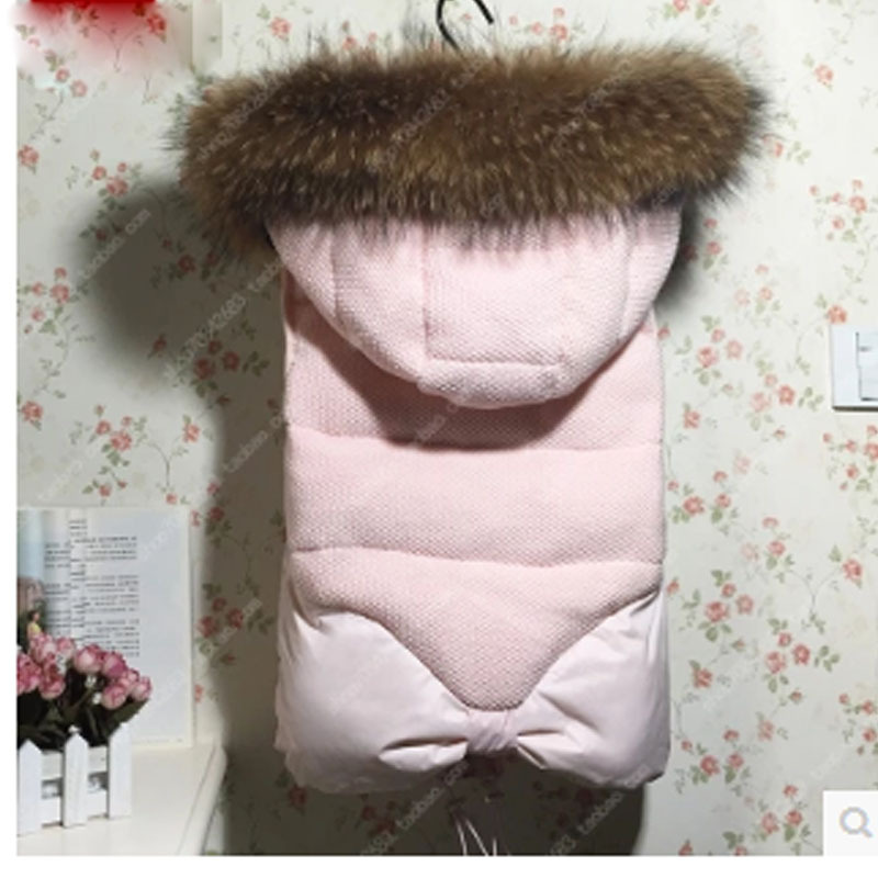2015歐美新款冬季超大豪華毛領(lǐng)針織面料拼接羽絨棉服馬甲 /
