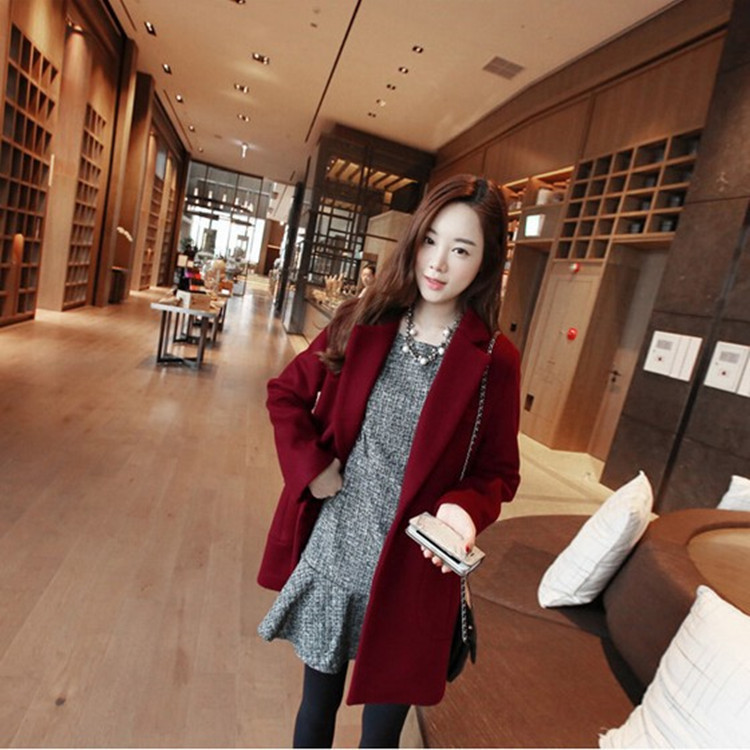毛呢外套女冬裝新款韓版修身顯瘦時尚氣質(zhì)中長款呢子大衣韓范 /
