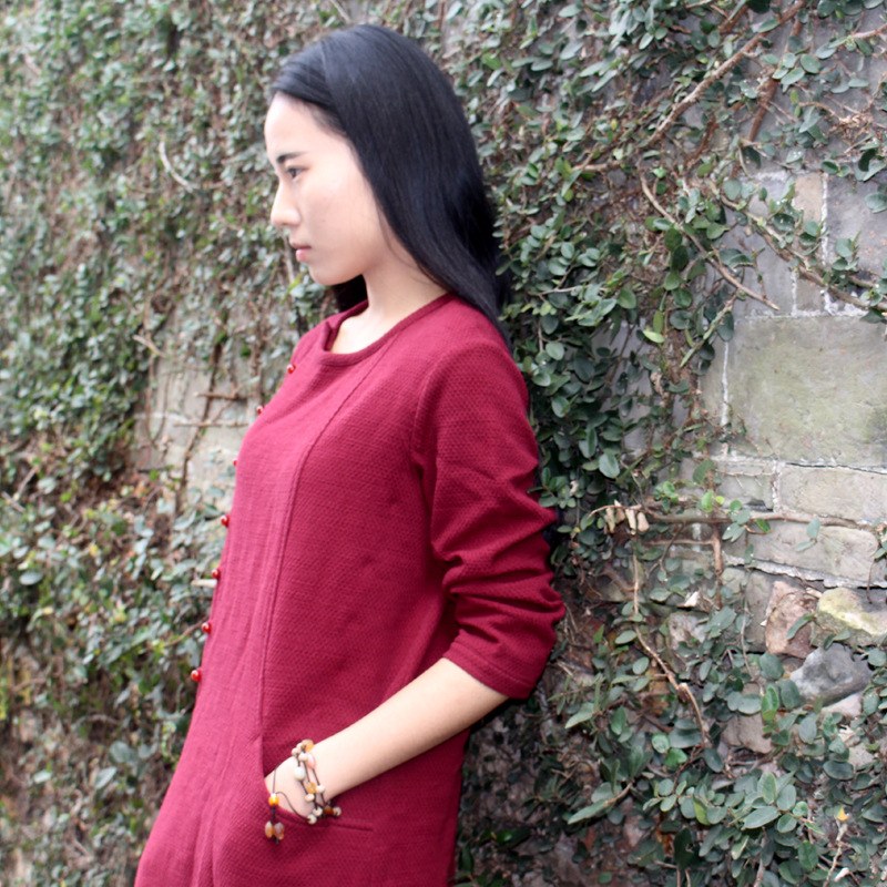 原創(chuàng)設(shè)計(jì)秋冬季復(fù)古寬松 提花棉麻連衣裙長(zhǎng)袍子 大碼女裝 /
