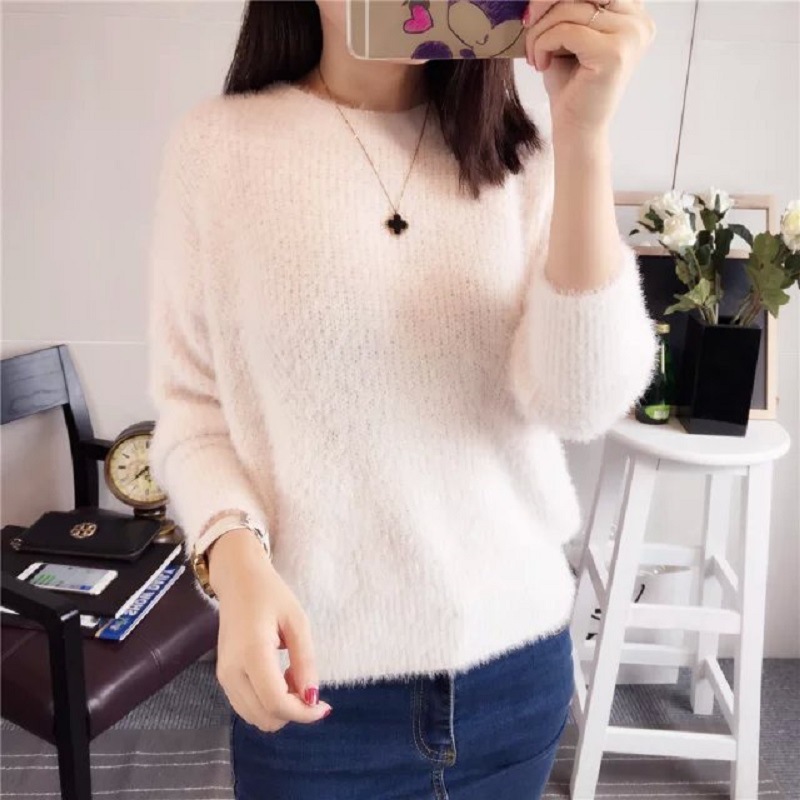 秋冬上衣毛衣韓版寬松純色貂絨毛衣女打底衫長袖加厚套頭針織衫女 /