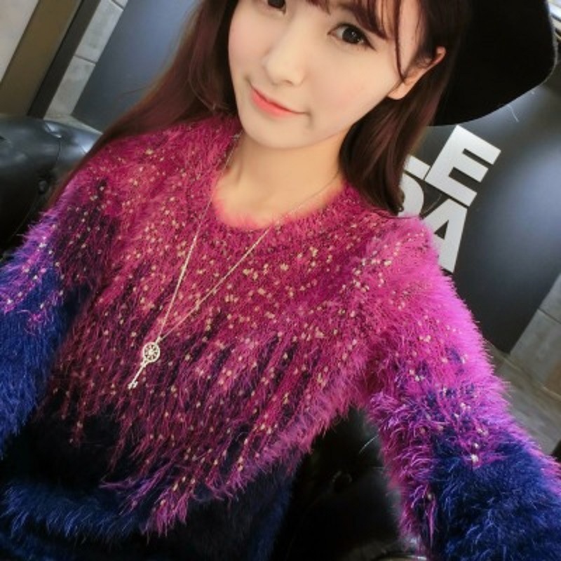 漸變色彩點馬海毛毛衣女套頭加厚寬松秋冬新品韓版冬季海馬毛毛衣 /