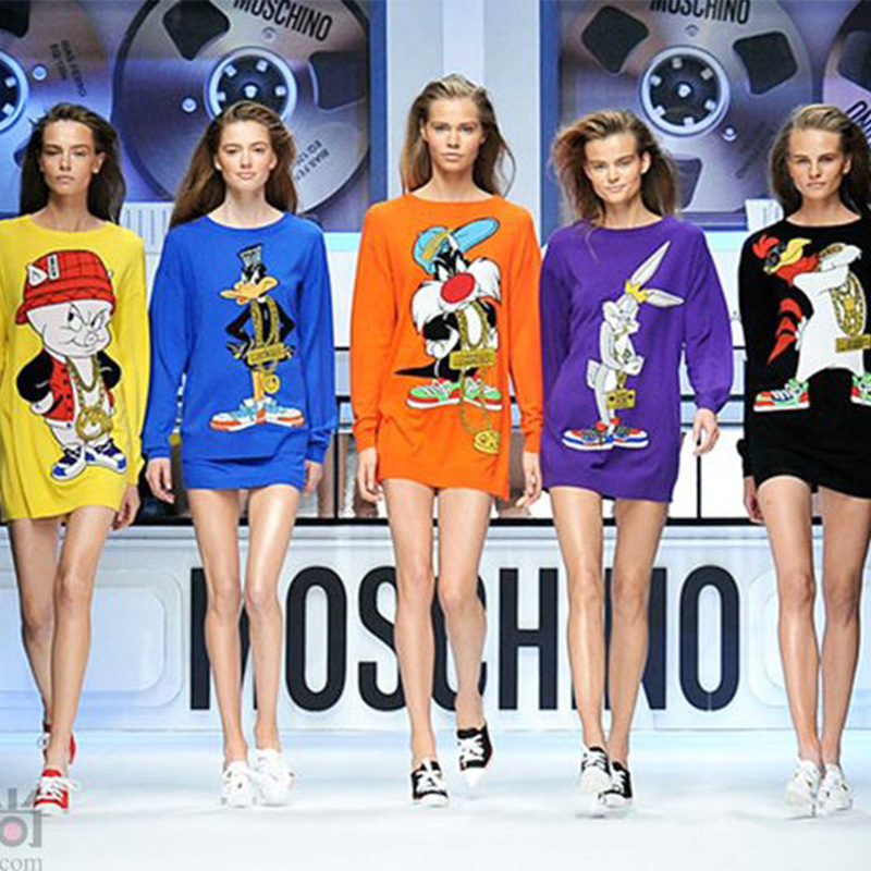 中長款針織T恤衫楊冪孫儷同款長袖針織連衣裙莫斯奇諾新款歐美 /