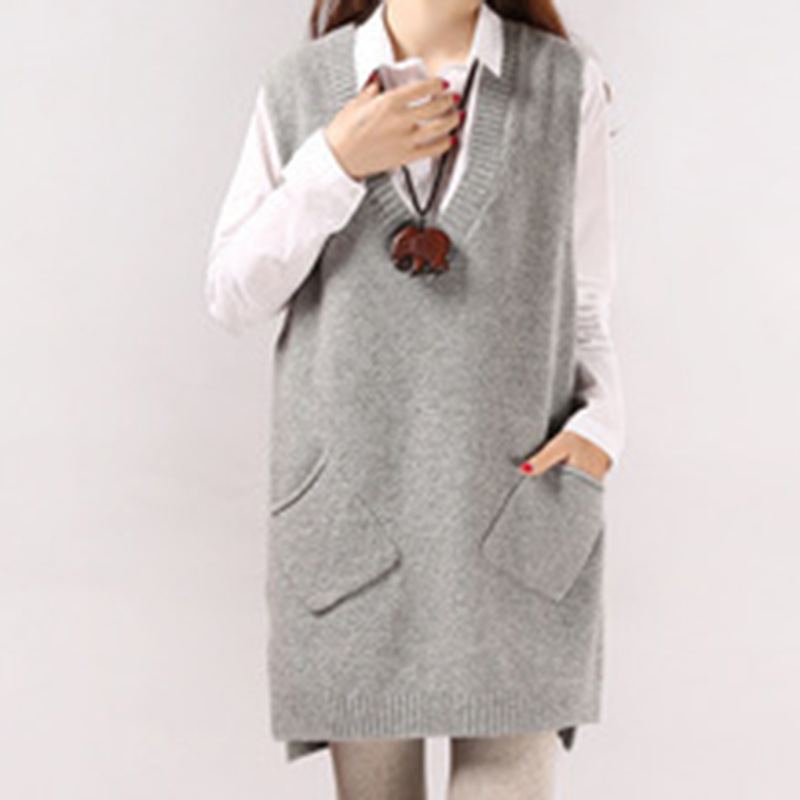 秋季時(shí)尚新款馬甲針織衫批發(fā) 套頭中長款背心裙無袖V領(lǐng)毛衣潮外套 /