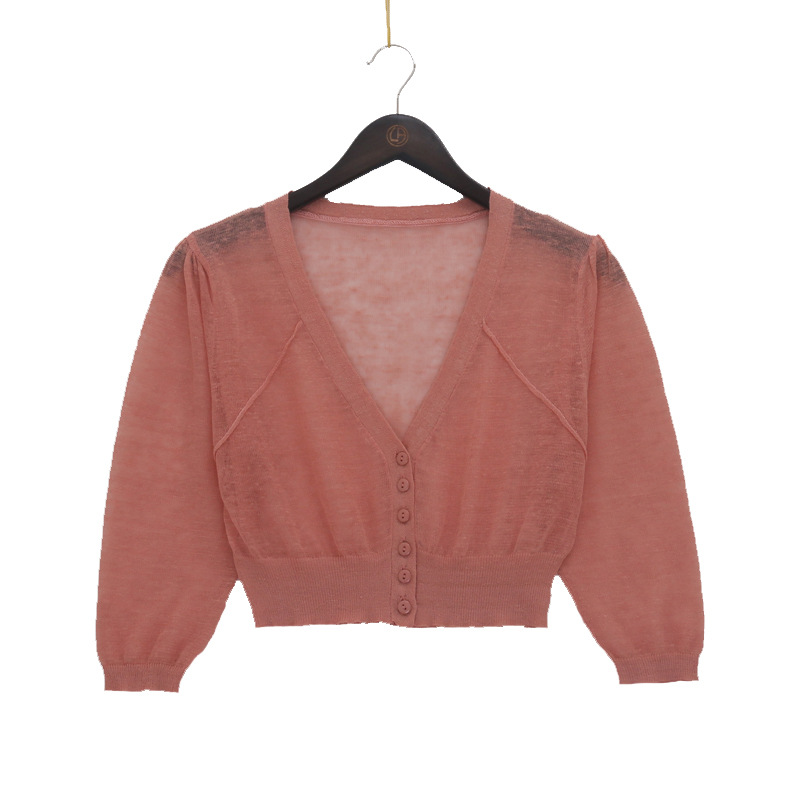 2015夏季外搭短款亞麻開衫針織衫女防曬衫長袖空調(diào)衫披肩薄外套* /