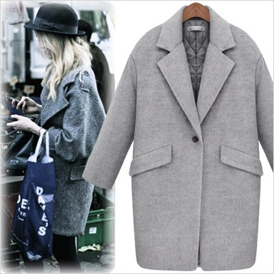 2015秋冬新款歐美簡約時尚翻領(lǐng)夾棉加厚繭型毛呢大衣呢子外套女 /