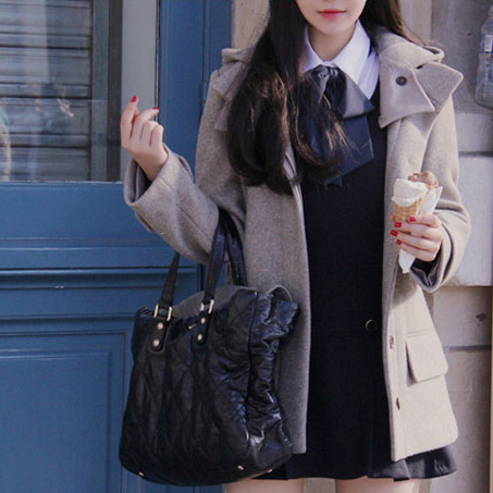 2015新款 韓版連帽學(xué)院風羊絨毛呢大衣外套女中長款 學(xué)生 顯瘦 /