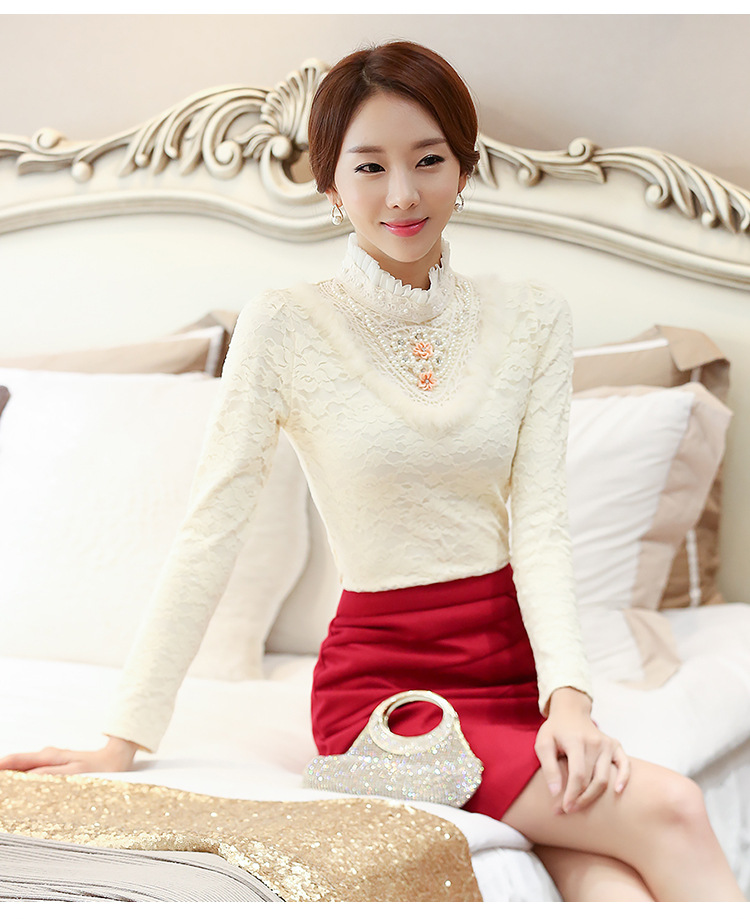 廠家直銷秋冬裝新款韓版女裝蕾絲打底衫大碼修身立領(lǐng)上衣潮款 /
