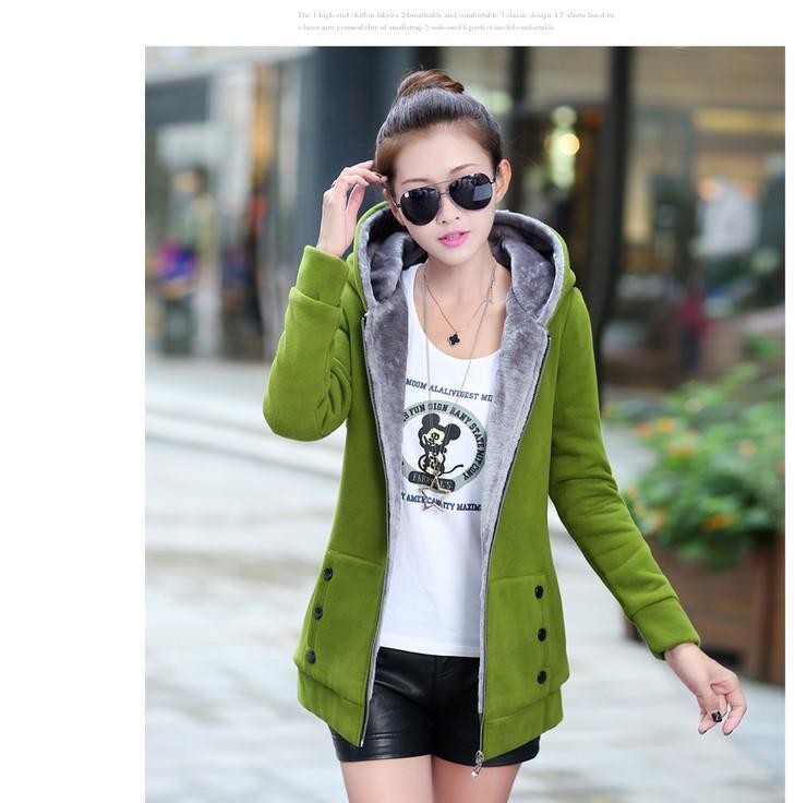 批發(fā)冬季潮流休閑女式外套 中長款修身大碼加絨連帽拉鏈保暖衛(wèi)衣 /