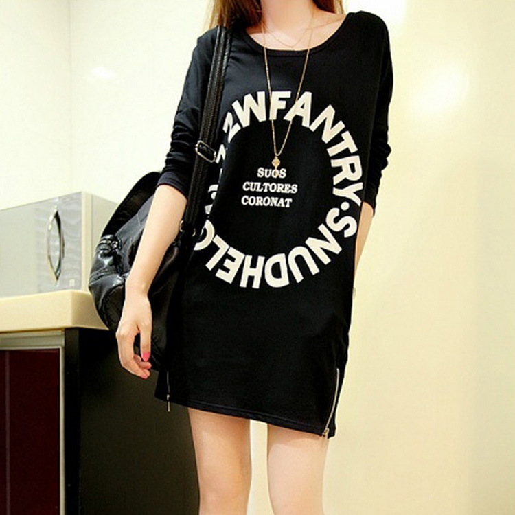 秋冬外貿(mào)新款女裝上衣 長袖套頭印花打底衫 中長款休閑女式t恤 /