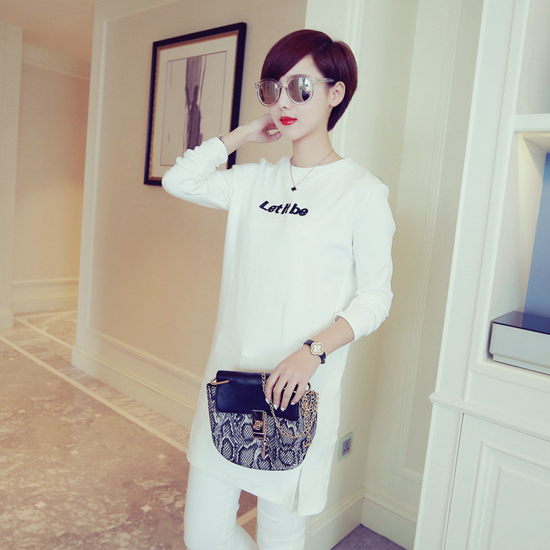 歐洲站女士冬裝新款圓領字母開叉中長款套頭T恤上衣女05 /