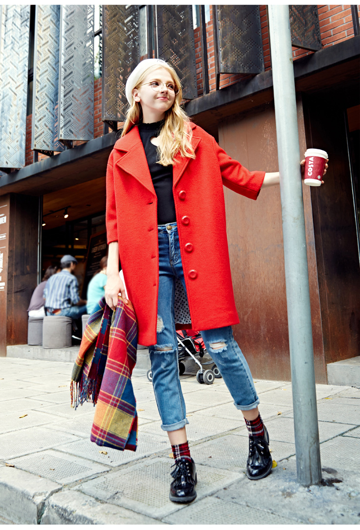 2015新款秋冬韓版外套中長款百搭呢子大衣女 /