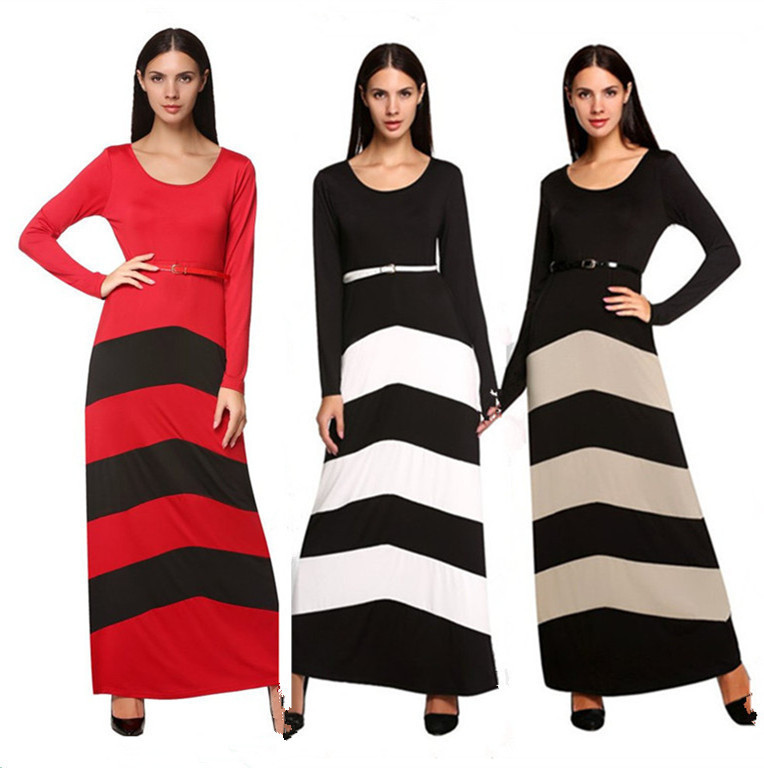 速賣通ebay歐美風(fēng)大牌 時(shí)尚性感幾何撞色長袖長款拖地連衣裙 /