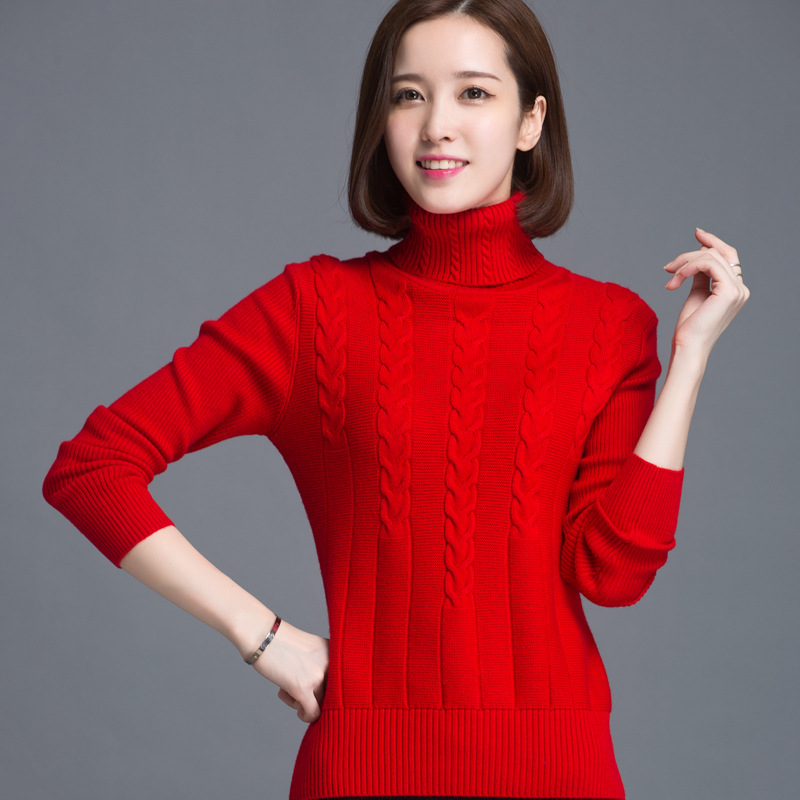 秋冬新品毛針織衫女士修身彈力高領(lǐng)羊毛打底衫短款套頭毛衣 厚 /