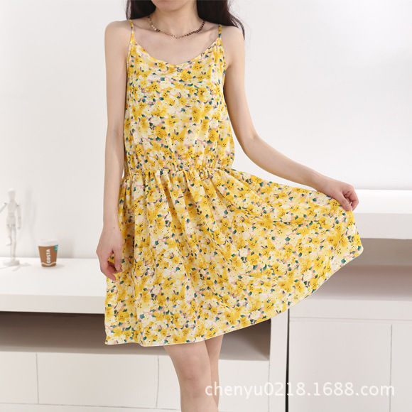 2015夏季新款女韓版氣質(zhì)寬松吊帶碎花裙子一件代發(fā)免費(fèi)代理S026 /